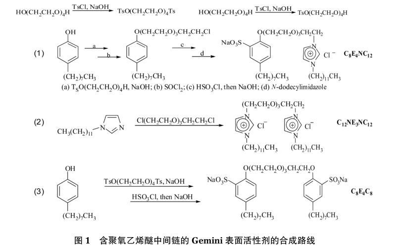 Gemini表面活性劑是具有雙親水雙親油特殊結(jié)構(gòu)的一類表面活性劑,因其結(jié)構(gòu)的特殊性和分子結(jié)構(gòu)設(shè)計的多樣性,使其在性質(zhì)和應(yīng)用方面有別于其他表面活性劑,具有表面活性更高,臨界膠束濃度(cmc)更低等特點(diǎn)。