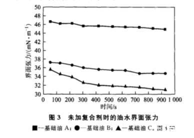 復(fù)合劑對不同基礎(chǔ)油界面張力的影響差異