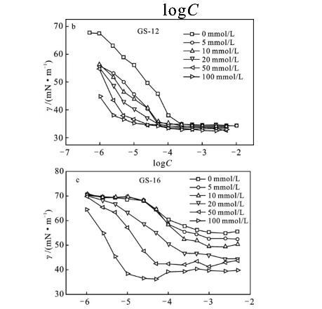 > 反離子鹽KBr濃度對(duì)酰胺基陽離子Gemini表面活性劑的表/界面活性的影響(二)