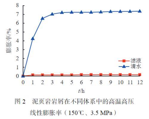 圖2泥頁(yè)巖巖屑在不同體系中的高溫高壓線性膨脹率(150℃、3.5 MPa)
