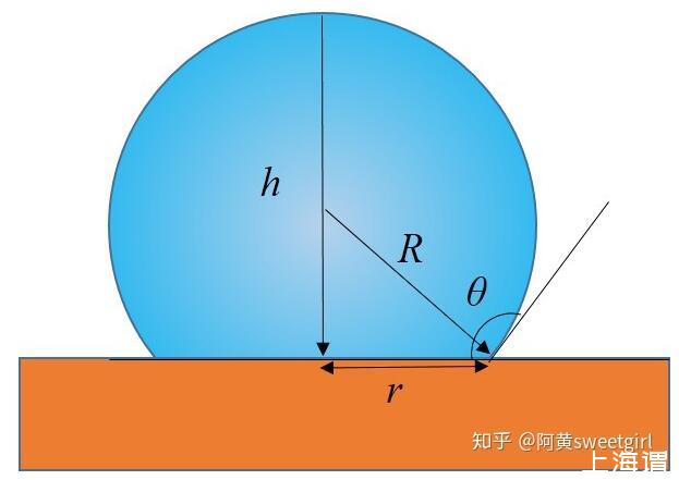 首先,此題必須分為兩種情形。第一種,是液體V很小時(shí),此時(shí)表面張力占主導(dǎo)地位。此解法宮非前輩已經(jīng)給出,但是其解析式不夠簡(jiǎn)化。因此我進(jìn)一步加以簡(jiǎn)化。當(dāng)表面張力占主導(dǎo)時(shí),液滴成完美的球缺狀,如圖1所示。